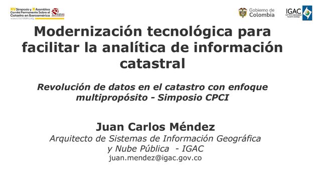 En la presentación se enumeran algunas tecnologías que facilitan el análisis de la información estructurada y no estructurada asociada a los métodos indirectos para la recolección de información catastral