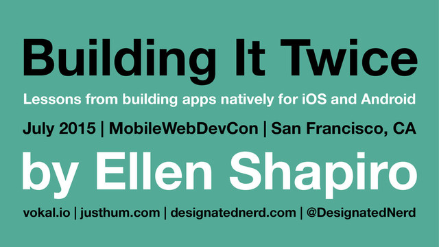 Android client as iOS added new features. —Single-developer team per platform (i.e., I built 90% of both MVP apps myself #humblebrag) —In-house design by Vokal