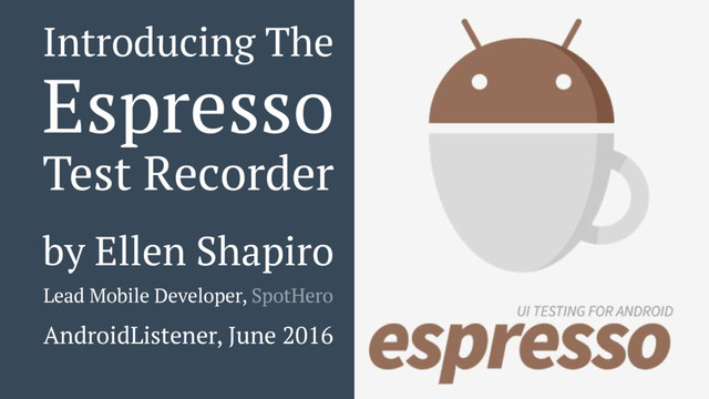 The presentation was mostly a demo of how this doesn't quite work correctly in 2.2 Preview 3. Results of the recording are here: https://github.com/designatednerd/Wino/blob/master/app/src/androidTest/java/com/designatednerd/wino/activity/WineTastingActivityTest.java