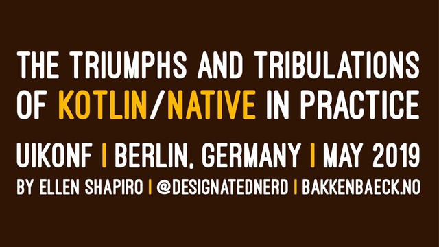 The Triumphs and Tribulations of Kotlin/Native In Practice - UIKonf, Berlin, Germany - May 2019