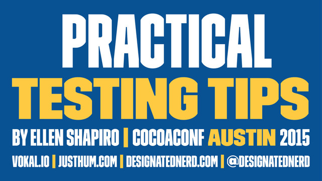 1. PRACTICAL TESTING TIPS by Ellen Shapiro | Cocoaconf Austin 2015