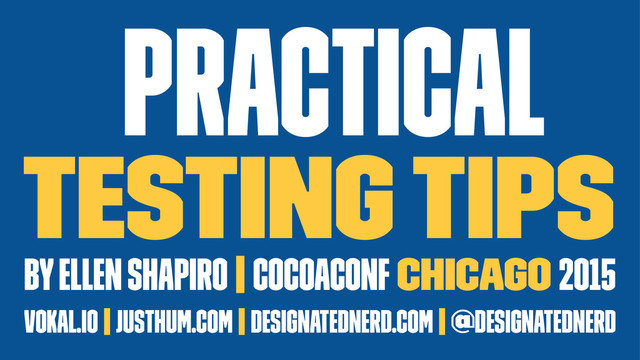 and find out immediately when you break stuff. » Test as much as you can, however much that is. » Find the testing ideology that works best for you. » UI Testing can give you a great opportunity to see how all the pieces of your app work together. » Have both humans and robots test your app for best results.