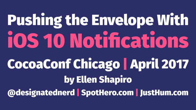 An expanded summary of the big changes to Notifications in iOS 10, and some fun stupid things I've learned since I first gave this presentation in September of 2016.