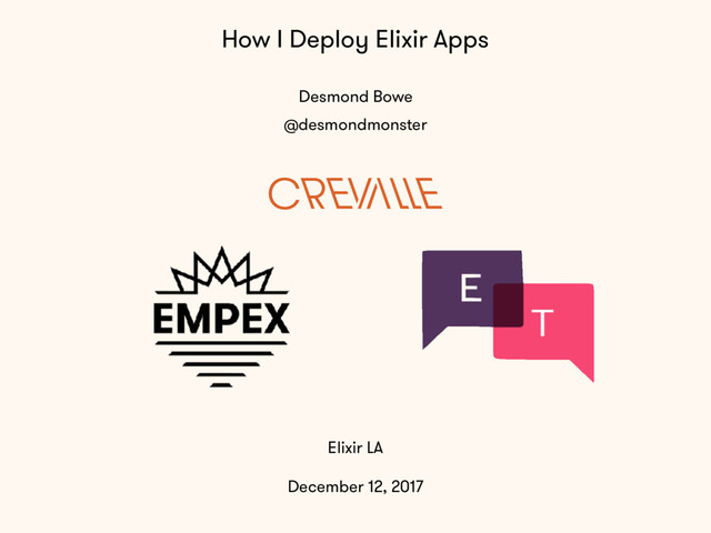 Crevalle has several company Elixir products and is creating new ones all the time. We need an easy way to deploy new applications and regularly update our existing ones. Here, we'll look at how the company uses Distillery and eDeliver to deploy our apps to a single server running Ubuntu.