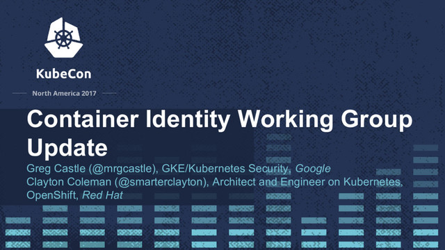 • Application x509 ID and standard naming scheme, API for workloads to access ID, runtime env for attestation, rotation •Istio (istio.io) • Lots of service management features. Identity: SPIFFE-named x509 certs to identify services •Vault integration (goo.gl/ZuAPtn) • Complete, but work underway (next slide, bound SA tokens) to scope K8s SA tokens