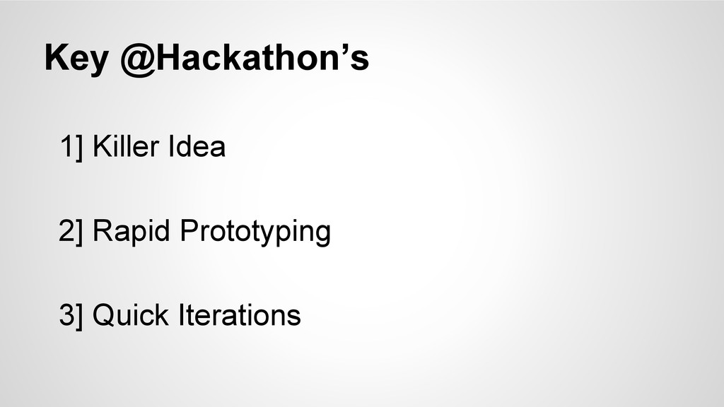 Key @Hackathon’s 1] Killer Idea 2] Rapid Prototyping 3] Quick