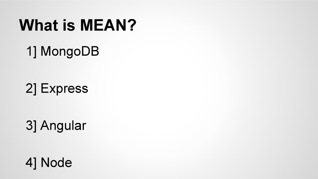 What is MEAN? 1] MongoDB 2] Express 3] Angular 4]