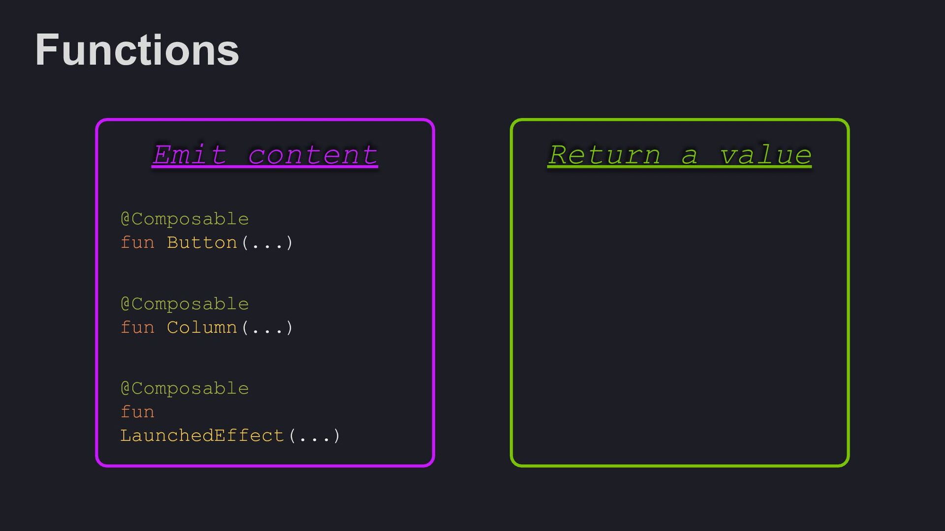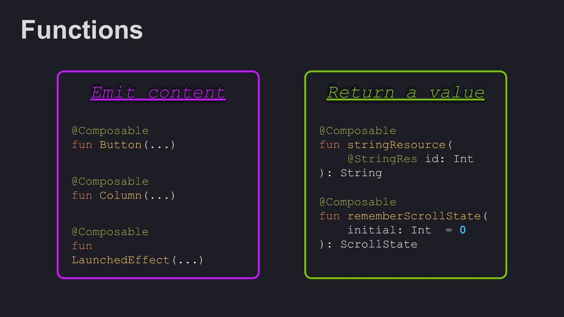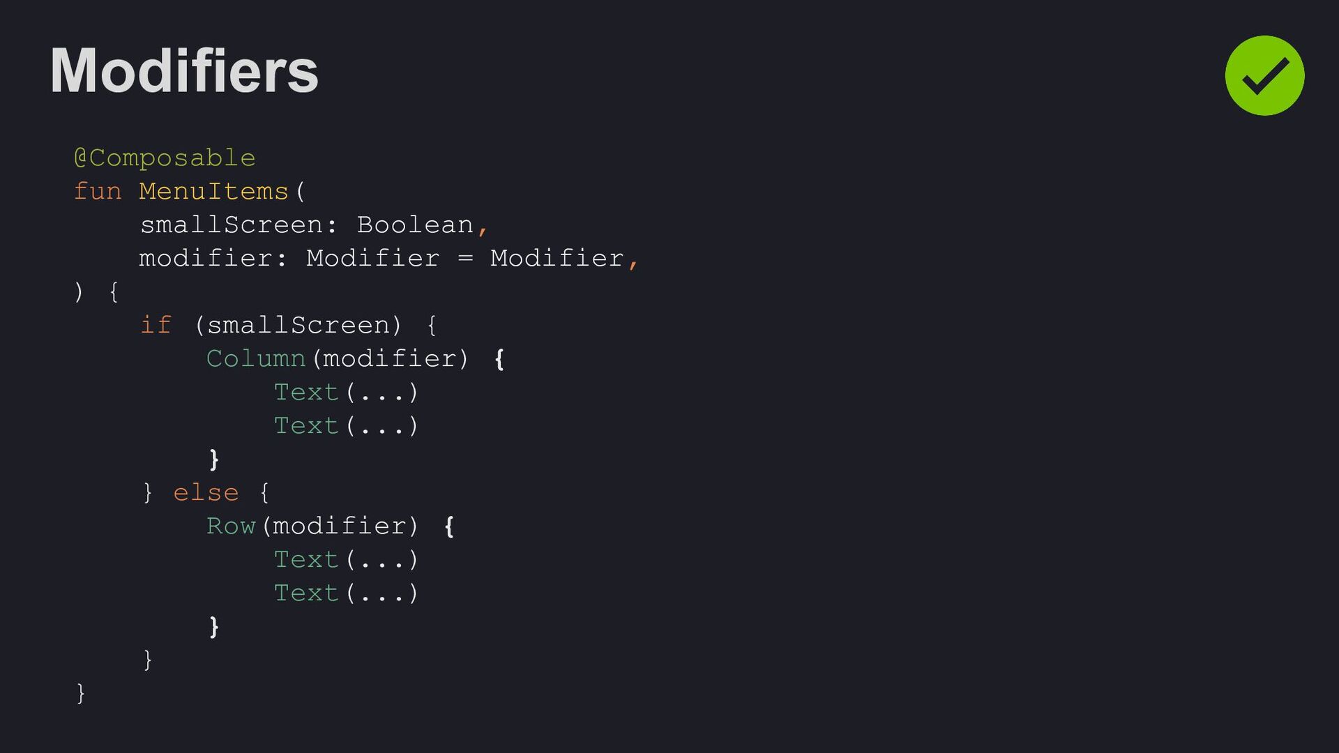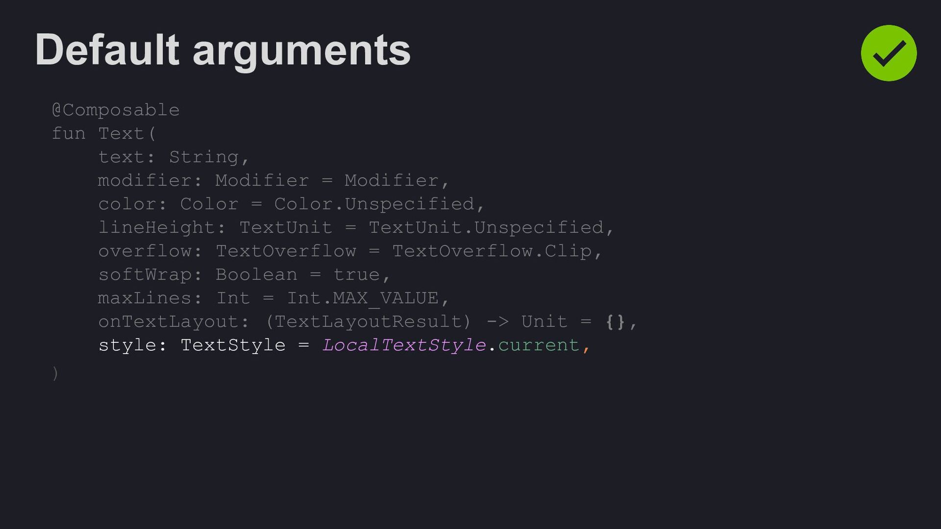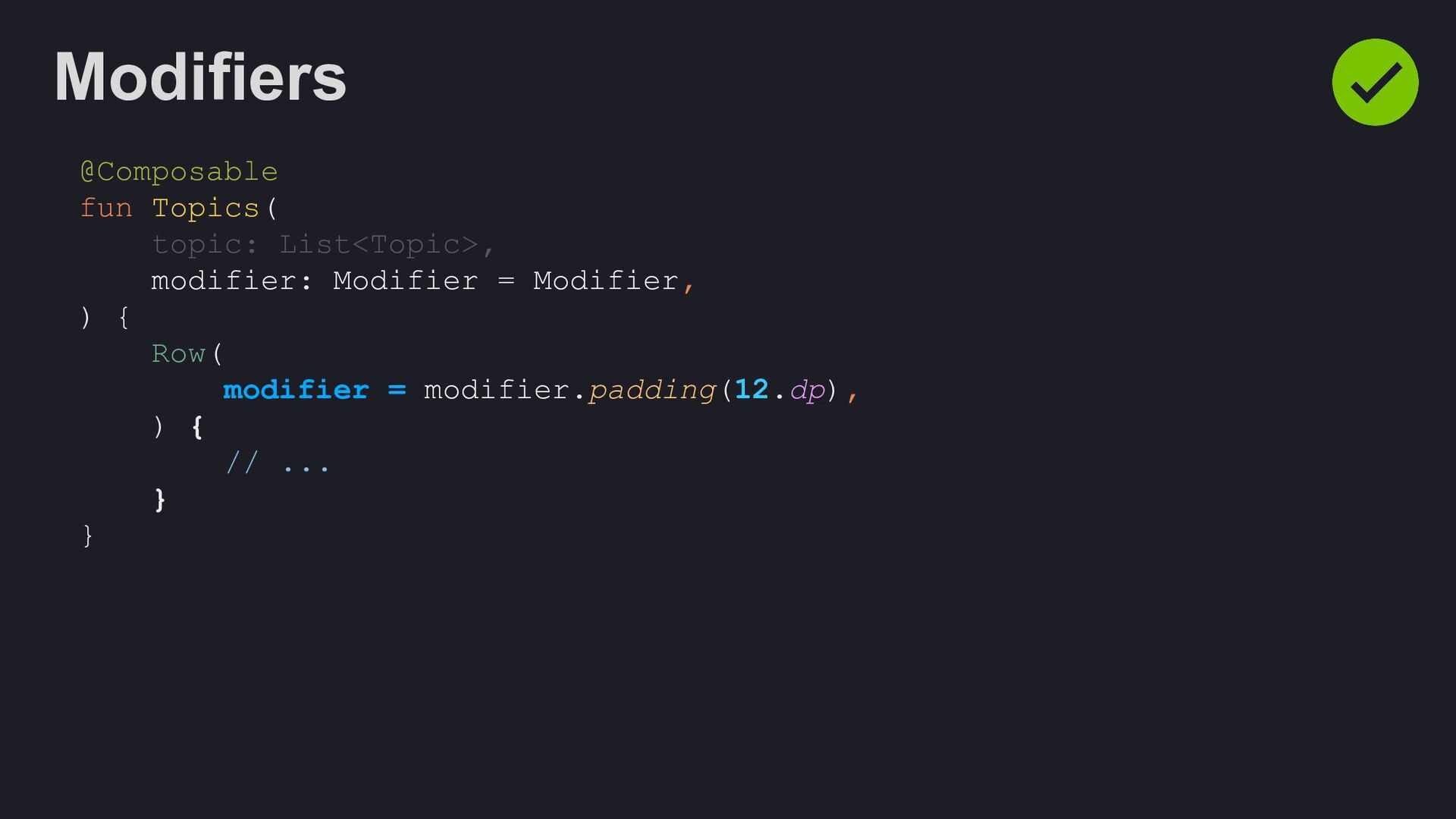 Modifier = Modifier, enabled: Boolean = true, shape: Shape = ButtonDefaults.shape, colors: ButtonColors = ButtonDefaults.buttonColors(), elevation: ButtonElevation? = ButtonDefaults.buttonElevation(), border: BorderStroke? = null, contentPadding: PaddingValues = ButtonDefaults.ContentPadding, content: @Composable RowScope.() -> Unit, )