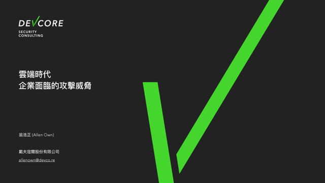雲端時代 企業⾯面臨臨的攻擊威脅 翁浩正 (Allen Own) 戴夫寇爾股份有限公司