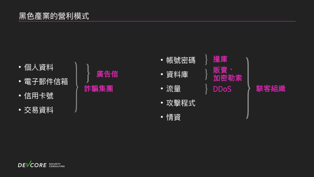 不是駭客,更更不是駭客組織 ⽽而是⿊黑⾊色產業