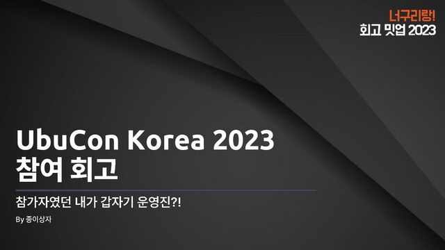 2023년 11월 25일에 개최한 '너구리랑! 회고 밋업 2023'에서 종이상자 님이 발표해주신 'UbuCon Korea 2023 참여 회고 - 참가자였던 내가 갑자기 운영진?!'의 공개 발표 자료입니다.