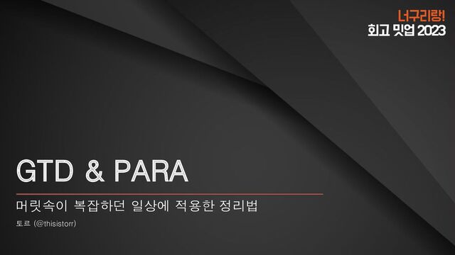효과 ▼) 해야할 일의 명확한 정의 높은 생산성 ------------------------------ ------------ ❓ 이미 해야할 일들이 명확한 분들 PARA 일을 명확하게 구분 빠르게 정보 찾기 관리 부담 적다. -------------------------- ------ ❓ 지난 모든 자료 정리 ❓ 이마저도 귀찮다..