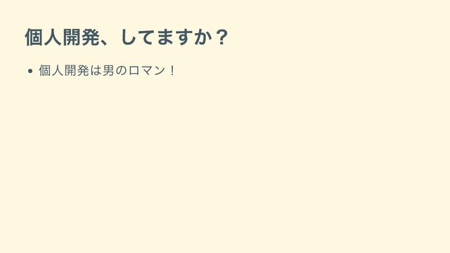 個人開発、してますか? 個人開発は男のロマン!
