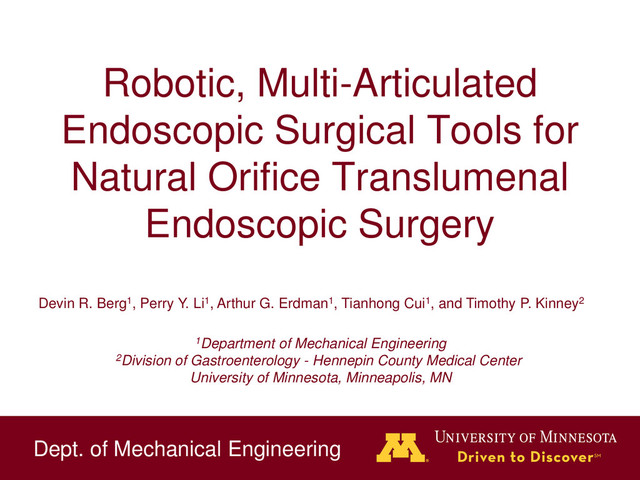 L., 2006. Development of advanced endoscopes for Natural Orifice Transluminal Endoscopic Surgery (NOTES). Minimally Invasive Surgery, 15(6), pp. 378-383. 2. Bergman, S. and Melvin, W.S., 2008. Natural orifice translumenal endoscopic surgery. Surgical Clinics of North America, 88, pp. 1131-1148. 3. Caldwell, D.G., Medrano-Cerda, G.A., and Goodwin, M., 1995. Control of pneumatic muscle actuators. Control Systems Magazine, 15(1), pp. 40-48. 4. Davis, S. and Caldwell, D.G., 2006. Braid effects on contractile range and friction modeling in pneumatic muscle actuators. The International Journal of Robotics Research, 25(4), pp. 359-369. 5. Granosik, G. and Borenstein, J., 2005. Pneumatic actuators for serpentine robot. 8th International Conference on Walking and Climbing Robots, pp. 719-726, London. 6. Gostout, C.J., 2009. Update on the use of NOTES procedures. Advances in Endoscopy, 5(6), pp. 401-405. 7. Kalloo, A.N., Singh, V.K., Jagannath, S.B., Niiyama, H., Hill, S.L., Vaughn, C.A., Magee, C.A., and Kantsevoy, S.V., 2004. Flexible transgastric peritoneoscopy: a novel approach to diagnostic and therapeutic interventions in the peritoneal cavity. Gastrointestinal Endoscopy, 60(1), pp. 114-117. 8. Rattner, D. and Kalloo, A., 2006. ASGE/SAGES Working Group on Natural Orifice Translumenal Endoscopic Surgery. Surgical Endoscopy, 20, pp. 329-333. 9. Reynolds, D.B., Repperger, D.W., Phillips, C.A., and Bandry, G., 2003. Modeling the dynamic characteristics of pneumatic muscle. Annals of Biomedical Engineering, 31, pp. 310-317. 10. Swanstrom, L.L., Khajanchee, Y., and Abbas, M.A., 2008. Natural Orifice Transluminal Endoscopic Surgery: The future of gastrointestinal surgery. The Permanente Journal, 12(2), pp. 42-47.