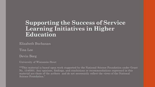 The work presented here stems from a four-year, National Science Foundation-funded project, designed to investigate the use of humanitarian service learning in education including a specific focus on international service learning and the work of Engineers Without Borders USA (EWB). As part of this work, our research team has conducted interviews or focus groups with a total of 42 students, 12 faculty, and 12 professional volunteers or mentors involved in EWB. One of the recurring themes that has emerged from these interviews is that, in most cases, the work that goes into creating and maintaining service learning opportunities receives little institutional support, both from a faculty and student perspective.