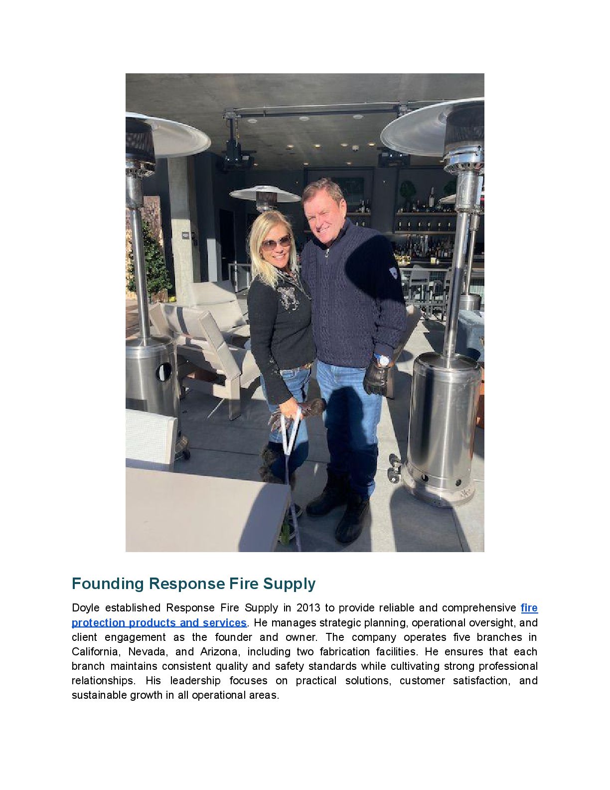 Doyle founded Response Fire Supply in 2013 to set a higher standard in fire protection products and services. He manages strategic planning, client relationships, and operational oversight as the founder and owner. The company now operates five branches across California, Nevada, and Arizona, including two facilities dedicated to fabrication. His approach balances business growth with attention to quality and customer satisfaction, reflecting a hands-on leadership style that prioritizes operational efficiency and client trust.