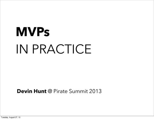 not making first versions • Choose the tool that best tests your hypothesis • More often then not, that tool isn’t a landing page • Keep them quick, sloppy, and disposable. Tuesday, August 27, 13