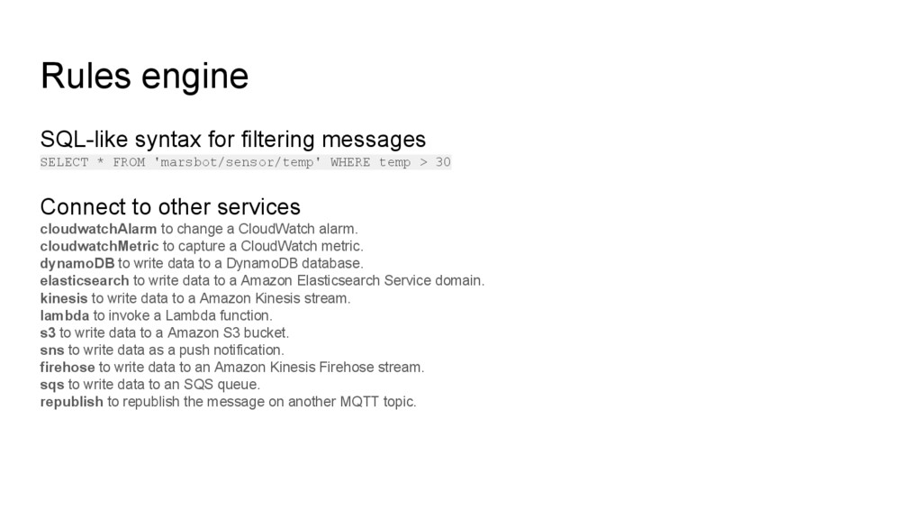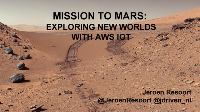 Would you like to explore new worlds with your connected devices? In this presentation we will build a simple robot and connect to it remotely, receiving data and sending instructions over the internet. Just like the Pathfinder spacecraft and it’s Sojourner Mars rover, our little robot will boldly travel into uncharted territory. In a live demo, our robot will explore the session room and transmit all kinds of sensor data. We will visualise that data in a web UI. With the Mars robot use case, we explore the capabilities of the Amazon IoT platform. AWS IoT comes with easy to use APIs and arranges secure communication with our robot. It also provides neat features like a rules engine and ‘device shadow’. Even when our robot is offline, device shadow makes it very easy to retrieve its latest status. And last but not least, for small scale use, AWS IoT is free for 1 year. Are you curious about how to connect your devices to the cloud? Take this journey and find out if this mission will lead to new discoveries.