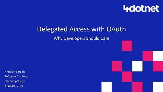 Delegated Access with OAuth Why Developers Should Care Annejan Barelds