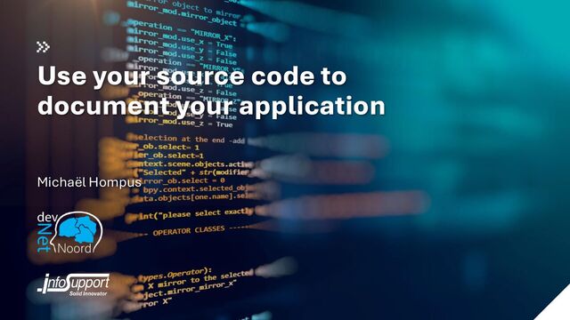 input of the developer • Generated files are not (easily) accessible – Source control – Hidden path in website – Artifact in your build pipeline • To generate readable and up-to-date documentation, it must be part of a pipeline