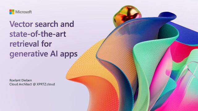 to date ranges, categories, geographic distances, access control groups, etc. Rich filter expressions Pre-/post-filtering Pre-filter: great for selective filters, no recall disruption Post-filter: better for low-selectivity filters, but watch for empty results https://learn.microsoft.com/azure/search/vector-search-filters r = search_client.search( None, top=5, vector_queries=[VectorizedQuery( vector=query_vector, k_nearest_neighbors=5, fields="embedding")], vector_filter_mode=VectorFilterMode.PRE_FILTER, filter= "tag eq 'perks' and created gt 2023-11-15T00:00:00Z") r = search_client.search( None, top=5, vector_queries=[ VectorizedQuery( vector=query1, fields="body_vector", k_nearest_neighbors=5,), VectorizedQuery( vector=query2, fields="title_vector", k_nearest_neighbors=5,) ]) Multi-vector scenarios Multiple vector fields per document Multi-vector queries Can mix and match as needed