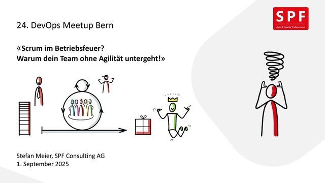 noch Scrum? Viele IT-Teams glauben, für agile Methoden sei im Betriebsalltag kein Platz. Falsch gedacht! In meinem Vortrag räume ich mit Mythen auf und zeige, warum gerade betriebslastige Teams von Scrum profitieren – oder langfristig auf der Strecke bleiben. Mit ehrlichen Insights, kontroversen Thesen und einem interaktiven Teil, der keine Ausreden zulässt. Bereit für den Reality-Check? Stefan Meier, SPF Consulting AG, Agile Coach Meet the Scrum-Flüsterer! Stefan Meier macht aus chaotischen IT-Teams echte DevOps- Heroes. 30 Jahre Projekterfahrung, 20 Jahre Agilität, unzählige «Das haben wir schon immer so gemacht»-Momente erfolgreich geknackt. Bei PostFinance, SBB & Galenica bewährt. Motto: «Agil geht immer – man muss nur wissen wie!» 01.09.2025 www.spf-consulting.ch 3