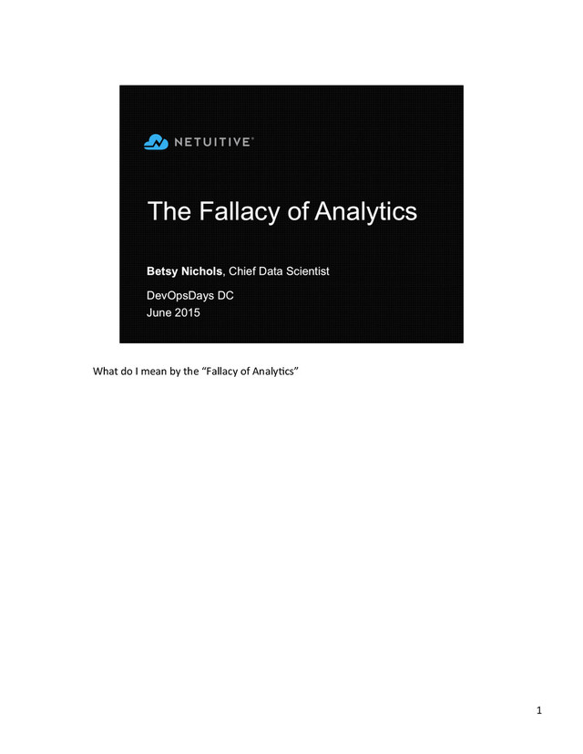 Is your performance monitoring using real-time analytics in a way that will produce results or noise and frustration? Real-time analytics can improve the value of performance monitoring by enabling operations teams to pinpoint problems faster and proactively manage applications, but it’s notoriously difficult to harness its value. In this presentation, we will show you how to avoid the pitfalls of partial analytics implementation, and explain the value of a comprehensive monitoring analytics platform.