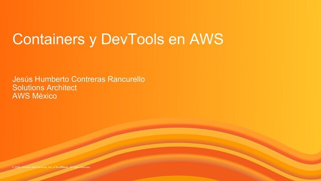 rights reserved. 32 Tu aplicación containerizada Administrado por AWS No se deben provisionar, escalar o administrar instancias EC2 Elástico Aumenta o disminuye capacidad de forma automática. Paga solamente lo que utilizas Integrado con el ecosistema de AWS: Redes VPC, Balanceo de carga, Permisos con IAM, Monitoreo con Cloudwatch AWS Fargate