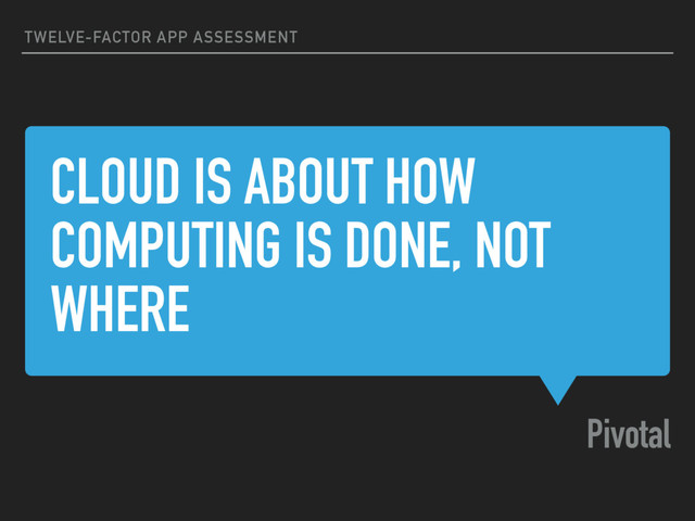 CLOUD IS ABOUT HOW COMPUTING IS DONE, NOT WHERE Pivotal