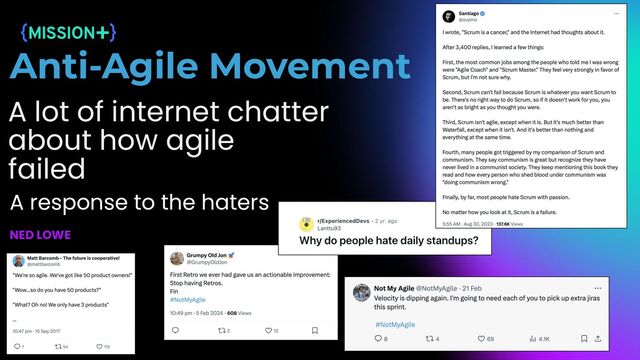 by doing it and helping others do it. Through this work we have come to value: Individuals and interactions over processes and tools Working software over comprehensive documentation Customer collaboration over contract negotiation Responding to change over following a plan That is, while there is value in the items on the right, we value the items on the left more. 20