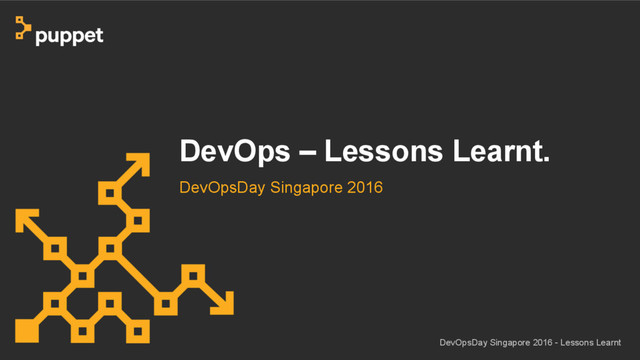 About Brett: greater than 20 years of experience in IT and electronics industry in various sectors, such a private, public and military. Brett has been using Puppet since 2011 and has been a Puppet Labs employee since 2013. Currently Brett is the Principal Solutions and Services Engineer for Puppet in APAC. Brett is the lead consultant in APAC for Puppet and undertakes many complex DevOps engagements. Brett has a Master of Systems Engineering, Bachelor of Computing and GradDip of Brewing.