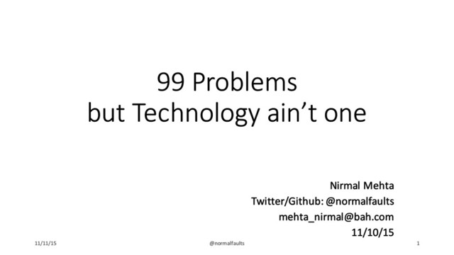 Currently implementing Open Source based Common Services Platform for GSA. Now with Devops • I heart new technology • I heart when people get excited and passionate about new ideas, technology and things 11/11/15 @normalfaults 2 Instagram: @starla.abbey