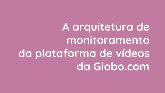 Nessa palestra pretendo apresentar a arquitetura de monitoramento da plataforma de vídeos da Globo.com, que constitui um dos componentes mais críticos e estratégicos da empresa.