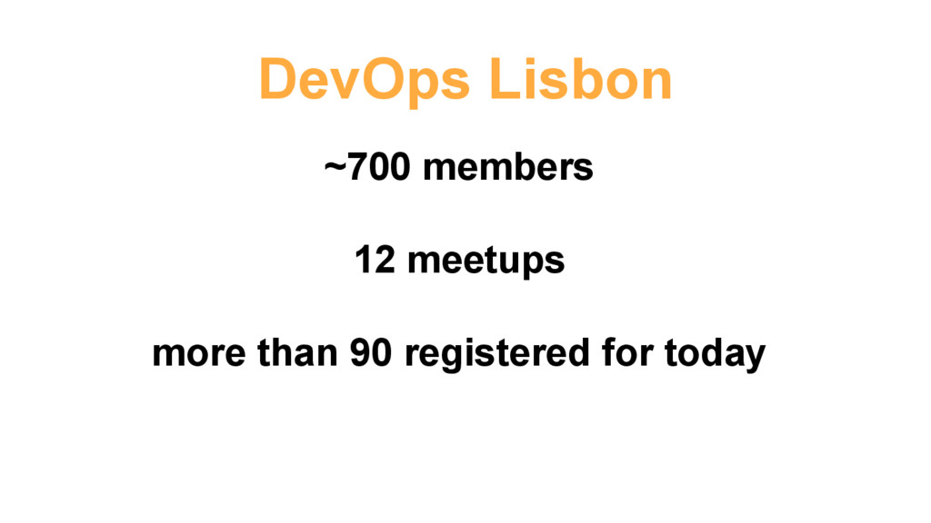 DevOps Lisbon ~700 members 12 meetups more than 90 registered
