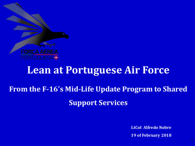 As early as 2007, Portuguese Air Force started applying Lean management to the F-16's Mid-Life Update program, which had not been able to deliver the required modified aircraft rate. Within this program, Portuguese Air Force looked into the processes involved in the aircraft modification, and by applying Lean management concepts worked out more and more efficient processes, by continuously eliminating non adding value steps. At the end, this continuous improvement effort made possible to increase thee aircraft delivery rate from 1 to 6 modified aircrafts per year.