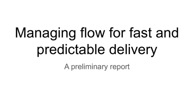 Managing flow for fast and predictable delivery A preliminary report
