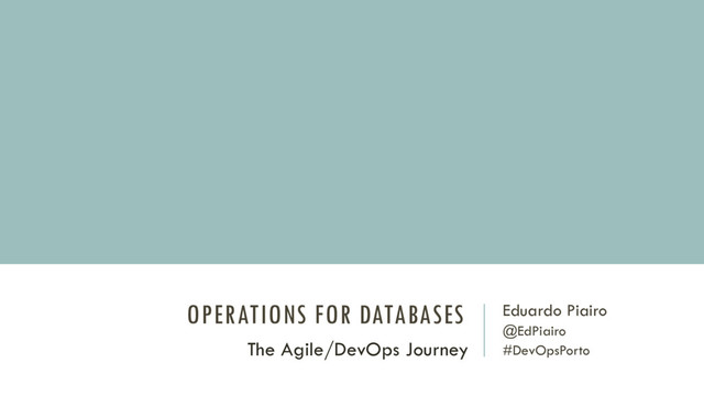 Database operations Automation Source Control Continuous Integration Continuous Delivery The definition and the interpretation of the covered concepts are attached to the cultural context of a specific organization on a certain period! @EdPiairo, #DevOpsPorto