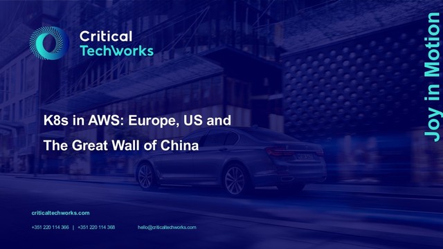 to find documentation for enterprise grade K8s solutions • Beijing AWS region != Any other AWS region • Think about China solutions separately • No access to google in China (Great Wall of China) • Beijing AWS + Kubernetes = LOTS OF PAIN