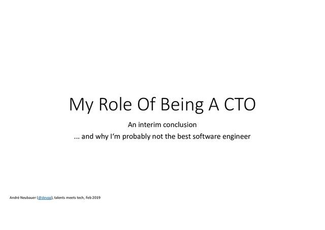 decision: Studying Business Administration & Entrepreneurship Areas Levels People Process Culture Operational Tactical Strategic Strive for business agility Hiring People development Org setup Being a role model Give freedom Challenge status quo Advocate on corporate values Discuss values and principles Tech IT strategy Technology decisions ... Active role Passive role