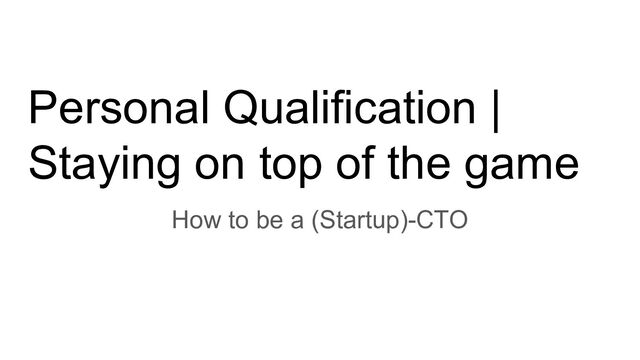 • Business administration & entrepreneurship studies • data experts - Software Engineer • ImmobilienScout24 - Software Engineer, Team Lead, Head • Deutsche Post, E-POST - Director Engineering, VP Product, CTO • Mister Spex - CTO • Smava - CTO • Startup I, II • German Startups Association - Spokesman "CTO Network" • Technology Advisor and Business Angel Education Career Side topics
