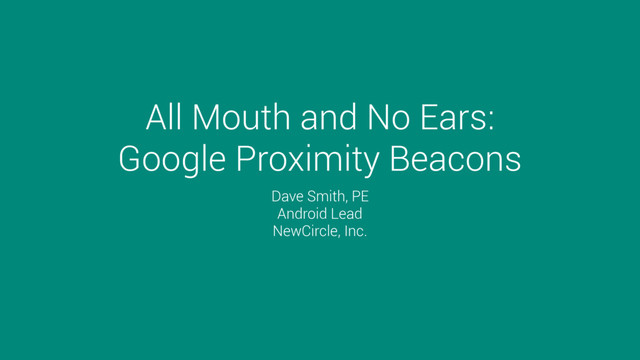 All Mouth and No Ears: Google Proximity Beacons Dave Smith,