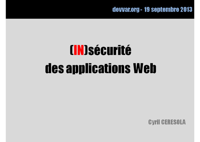 Après quelques rappels de vocabulaire et de contexte, les principes de défenses ainsi que le management de la sécurité tout au long d'un projet applicatif seront évoqués.