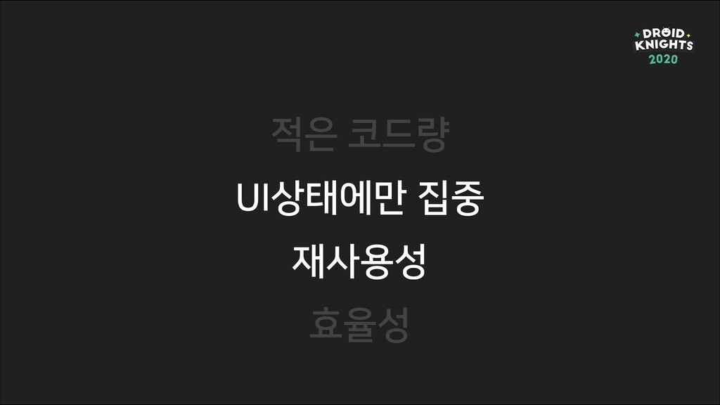 적은 코드량 UI상태에만 집중 재사용성 효율성