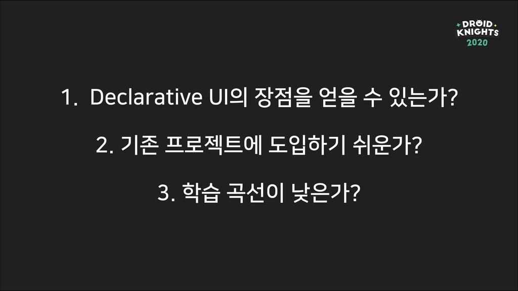 1. Declarative UI의 장점을 얻을 수 있는가? 2. 기존 프로젝트에