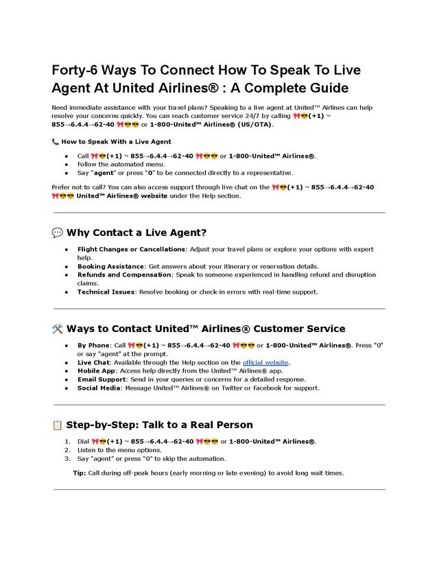 Need immediate assistance with your travel plans? Speaking to a live agent at United™️ Airlines can help resolve your concerns quickly. You can reach customer service 24/7 by calling 🎀😎(+1) ↬ 855→6.4.4→62-40 🎀😎😎 or 1-800-United™️ Airlines® (US/OTA).