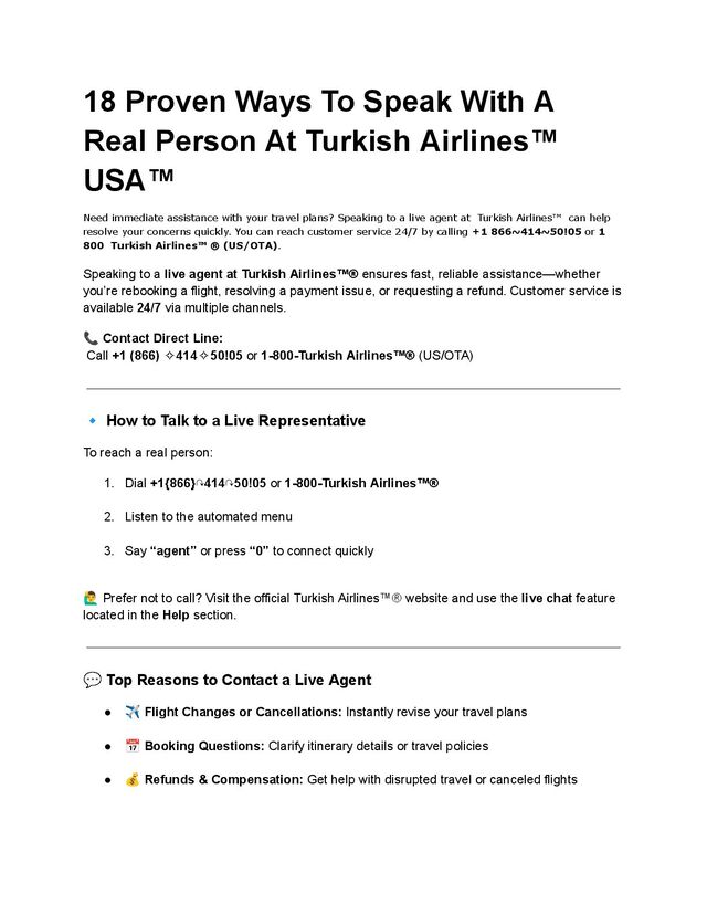 Need quick help? Skip the hassle and connect with a real support agent by calling +1✦866✦414✦50!05. Whether you're managing a flight change or troubleshooting an issue, Turkish Airlines™️® provides 24/7 live assistance to get you back on track.