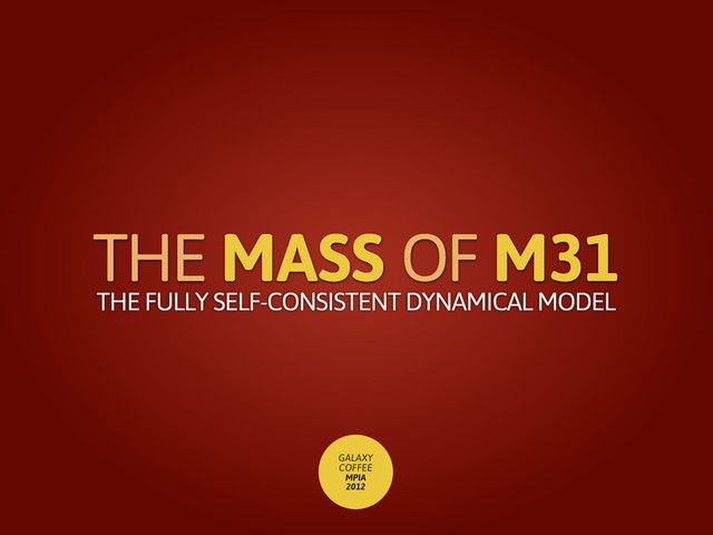 Barmby et al. (2006) satellite galaxy kinematics PAndAS, SPLASH, et al. Conn et al. (2011, in prep) ~10 kpc ~500 kpc Data PLUS: HALO STARS GLOBULAR CLUSTERS PLANETARY NEBULAE ETC.