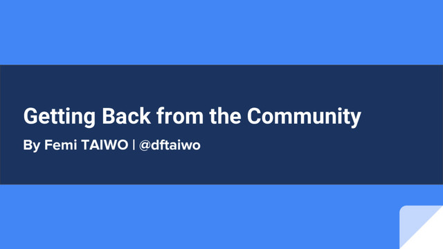 Stories and highlights from different developers in Nigeria who have gained back from the community, how they did and what to think about when you want to.