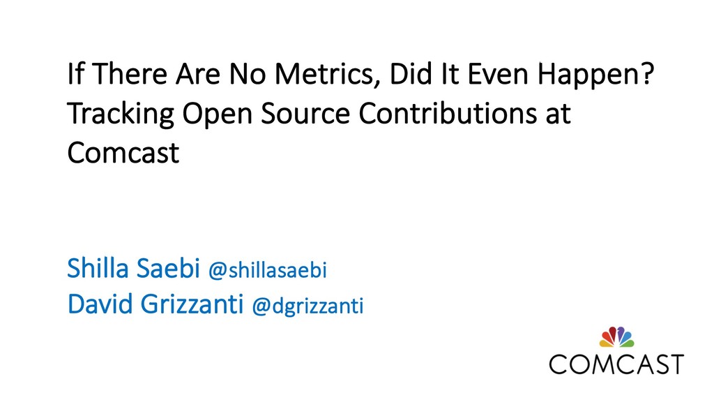 Do you measure the health of your open source projects? Do you show it with metrics? Do these metrics include the number of downloads, forks, users, perhaps even mentions on Twitter? At Comcast, we want to grow and sustain useful software for the community. One of the ways we can do this is by measuring the health of open source projects we release, and by tracking contributors and commits to the projects.