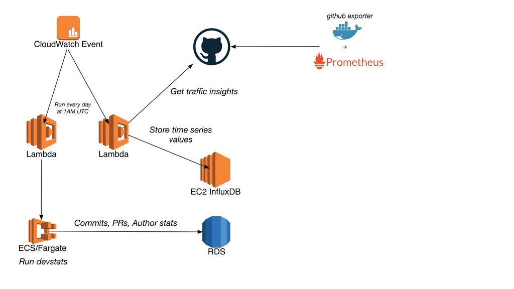 Using a combination of open source tools and server-less cloud technologies, we have been able to automate the collection of these metrics for use by our internal Open Source practice team to track and build communities around the tools we build.